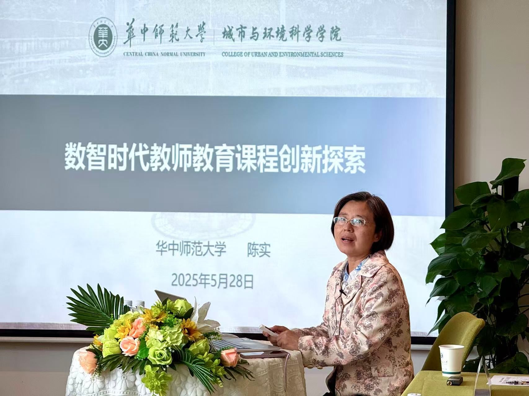 5月28日下午,由党委教师工作部、校工会、本科生院联合主办的“吾爱吾师”沙龙总第8期暨“三尺讲台”名师系列第3期在大学生活动中心B栋5楼举行。本期沙龙以“数智时代的教师教育课程创新探索”为主题,特邀华中师范大学城市与环境科学学院博士生导师陈实教授担任主讲嘉宾,围绕数智技术与教师教育深度融合展开研讨,与到场师生共探数智技术赋能教师教育的实践路径。