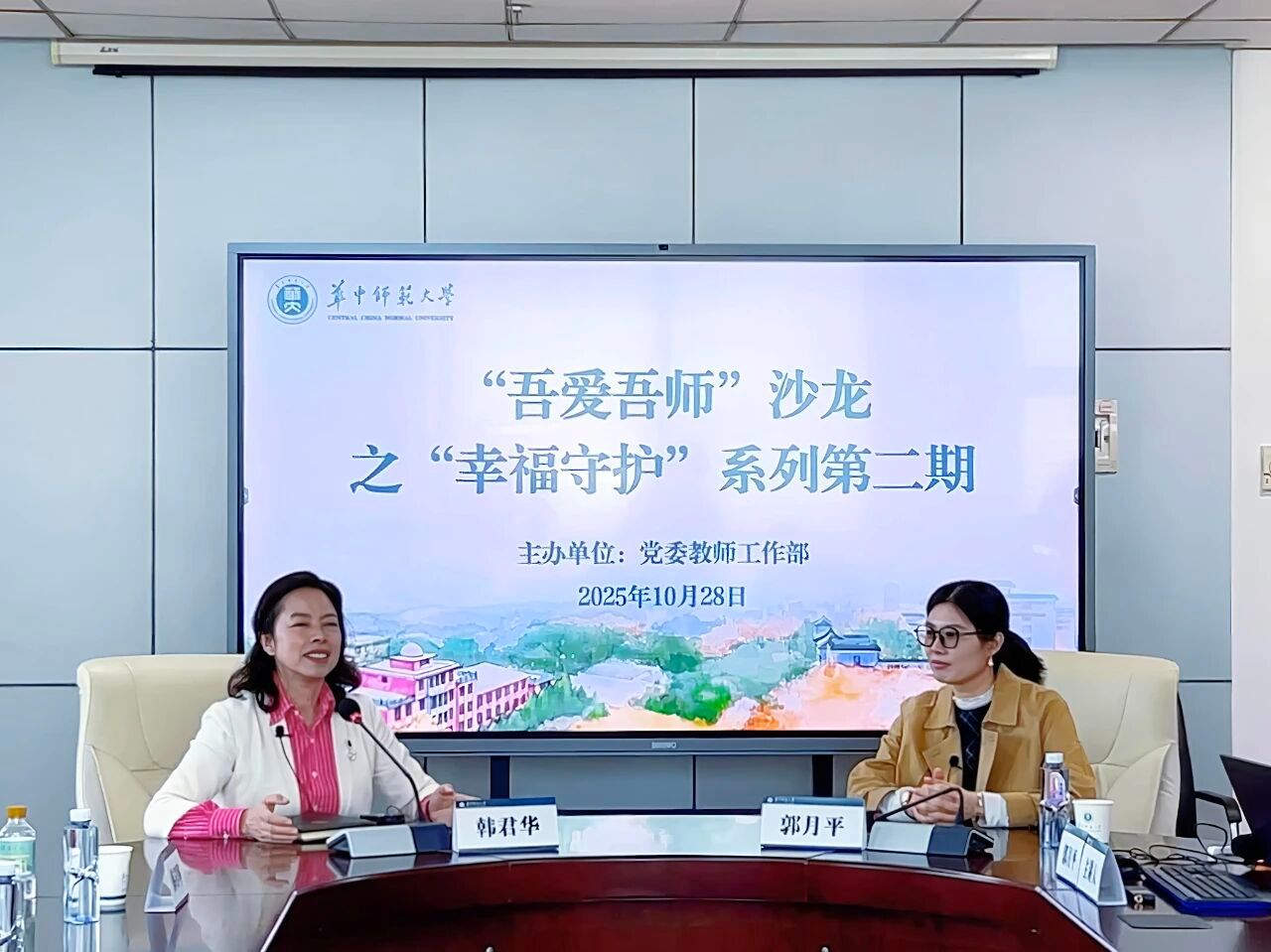 10月28日下午,由党委教师工作部主办的“吾爱吾师”沙龙总第10期暨“幸福守护”系列第二期在图书馆九楼风雅斋成功举办。本次活动以“拥抱生命新阶段:女性更年期心理健康指南”为题,特邀华中师范大学医院精神科医师、心理治疗师郭月平担任主讲嘉宾,聚焦女性更年期心理变化并提出科学调适的健康指南,为广大女性教师生活平衡和健康发展提供了温馨的专业平台。